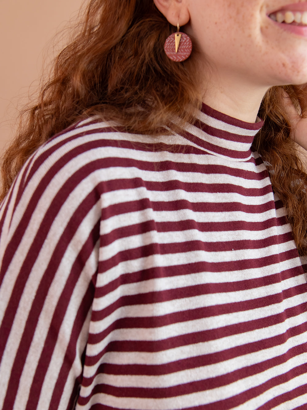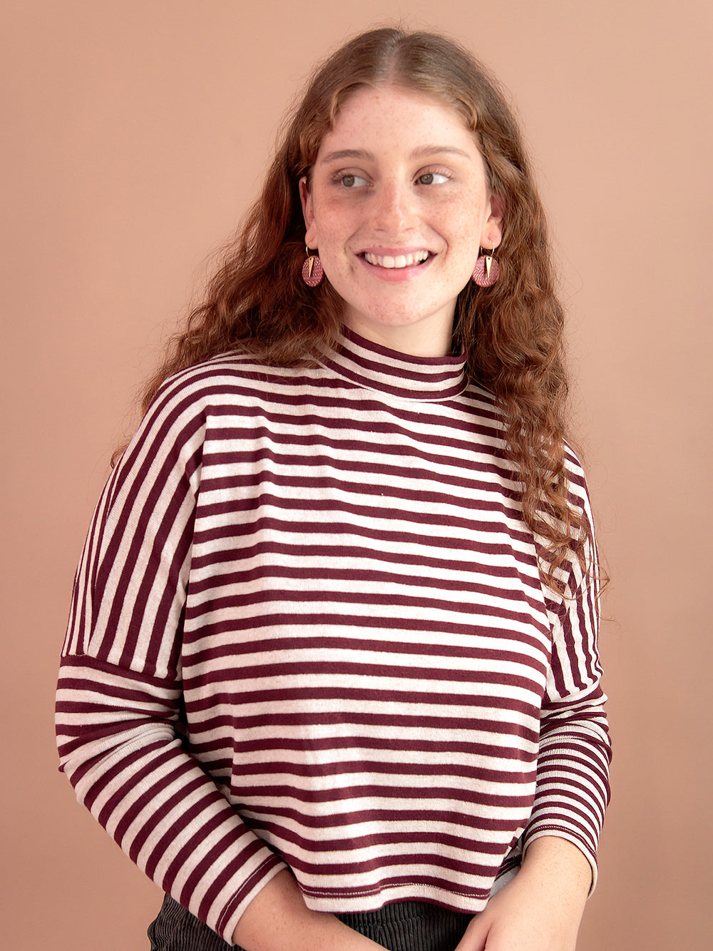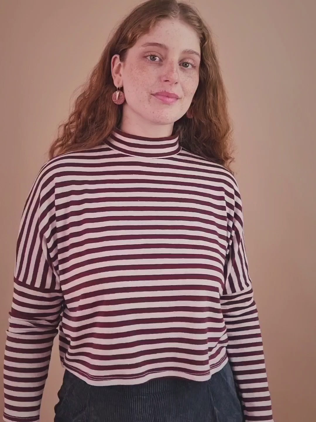 La camiseta Ronda Ritual es una de esas prendas que combinan comodidad y estilo sin esfuerzo. Su patrón ancho con cuello alto y manga larga le da un aire desenfadado y actual, perfecto para el día a día. Su tejido tiene un punto elástico muy cómodo y una caída preciosa, que le da un aire moderno sin perder la esencia práctica de una camiseta de diario.